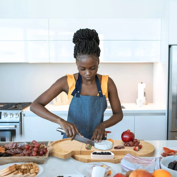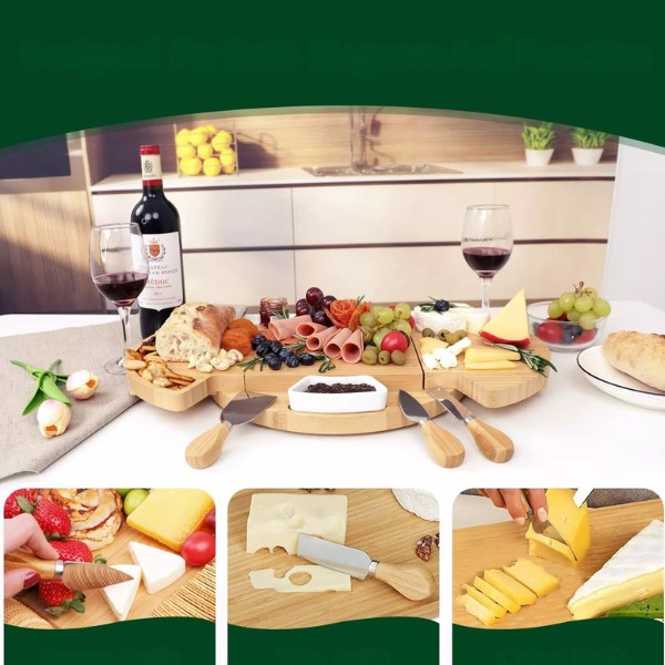 Ta taca nie tylko elegancko prezentuje przekąski, ale także służy jako deska do krojenia. Jej gładka drewniana powierzchnia ułatwia krojenie i serwowanie wszystkich ulubionych przekąsek w jednym miejscu.