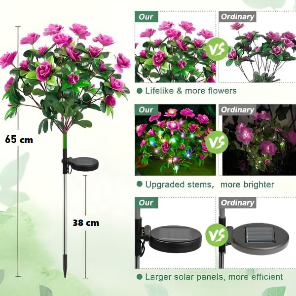 🌸 Odmień swoje podwórko dzięki realistycznym kwiatom azalii, które zapalają się automatycznie o zmierzchu.