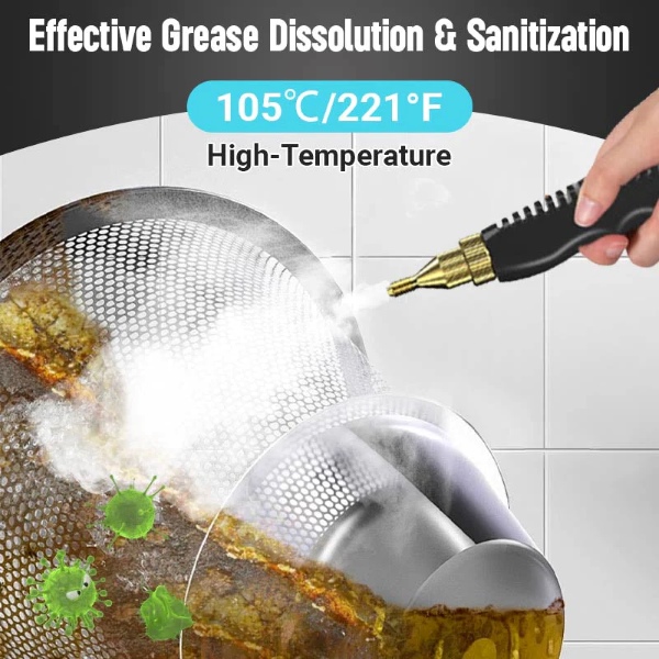 Moc znamionowa 1600W wytwarza parę o temperaturze do 105℃ w mniej niż 10 sekund, usuwając tłuszcz, brud, kurz i plamy z różnych powierzchni w krótkim czasie.