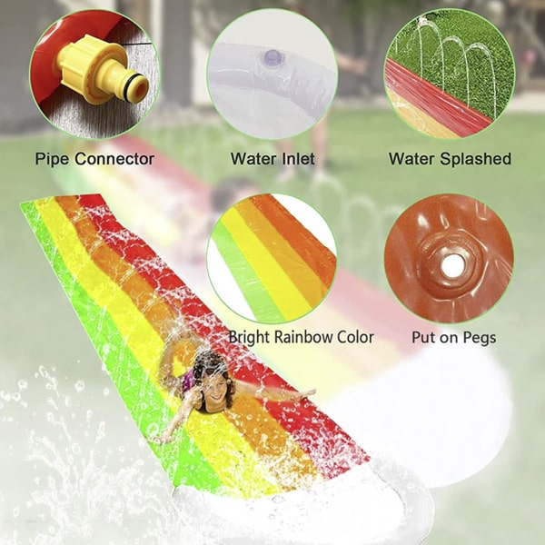 Świetna zabawa na świeżym powietrzu z nadmuchiwaną zjeżdżalnią wodną z systemem zraszania! Równa i gładka powierzchnia pozwala na szybkie zjeżdżanie, a system zraszania utrzymuje śliskość zjeżdżalni i dodaje emocji. Odpowiednia zarówno dla dzieci, jak i dorosłych!