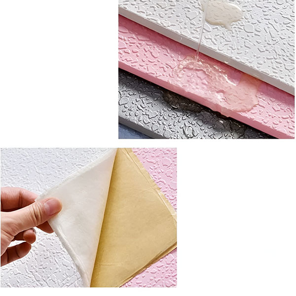 Błyskawicznie odmień każde pomieszczenie dzięki naszym wodoodpornym samoprzylepnym tapetom 3D! Wybieraj spośród 4 żywych kolorów, które pasują do Twojego stylu.
