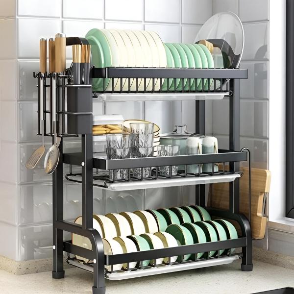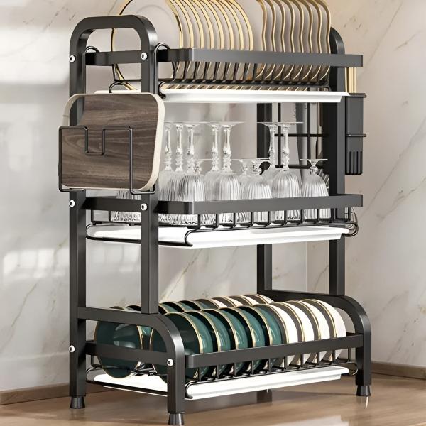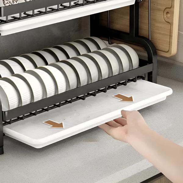 Zmaksymalizuj swoją przestrzeń kuchenną dzięki wielopoziomowej konfiguracji, która obsługuje dużą ilość naczyń, zajmując przy tym minimalną ilość miejsca.