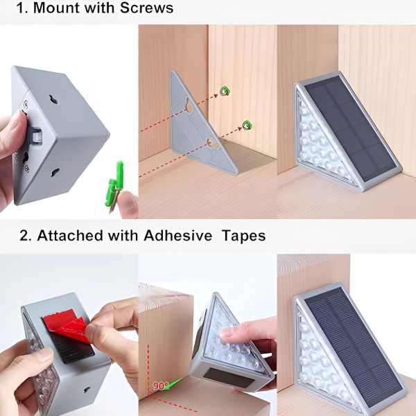 Można je zamontować za pomocą śrub lub taśm samoprzylepnych.