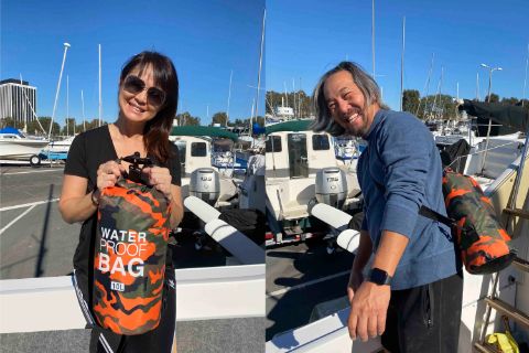 2. Teraz wrzuć torbę do wody! Obserwuj, jak unosi się na wodzie, chroniąc przy tym wszystkie Twoje skarby